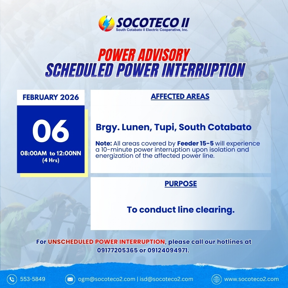 NOTICE OF POWER INTERRUPTIONS on February 6-8, 2026