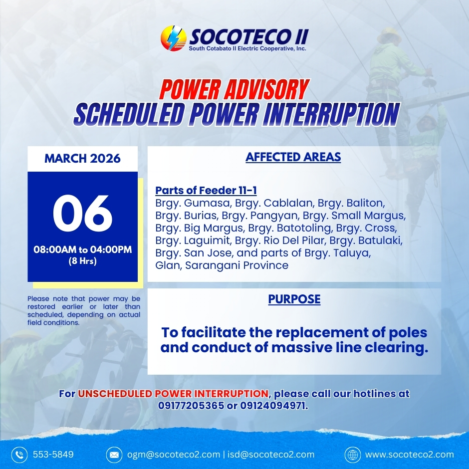 NOTICE OF SCHEDULED POWER INTERRUPTIONS on November 16, 2025