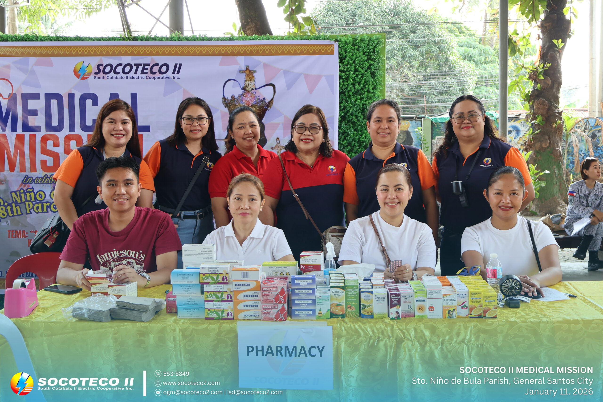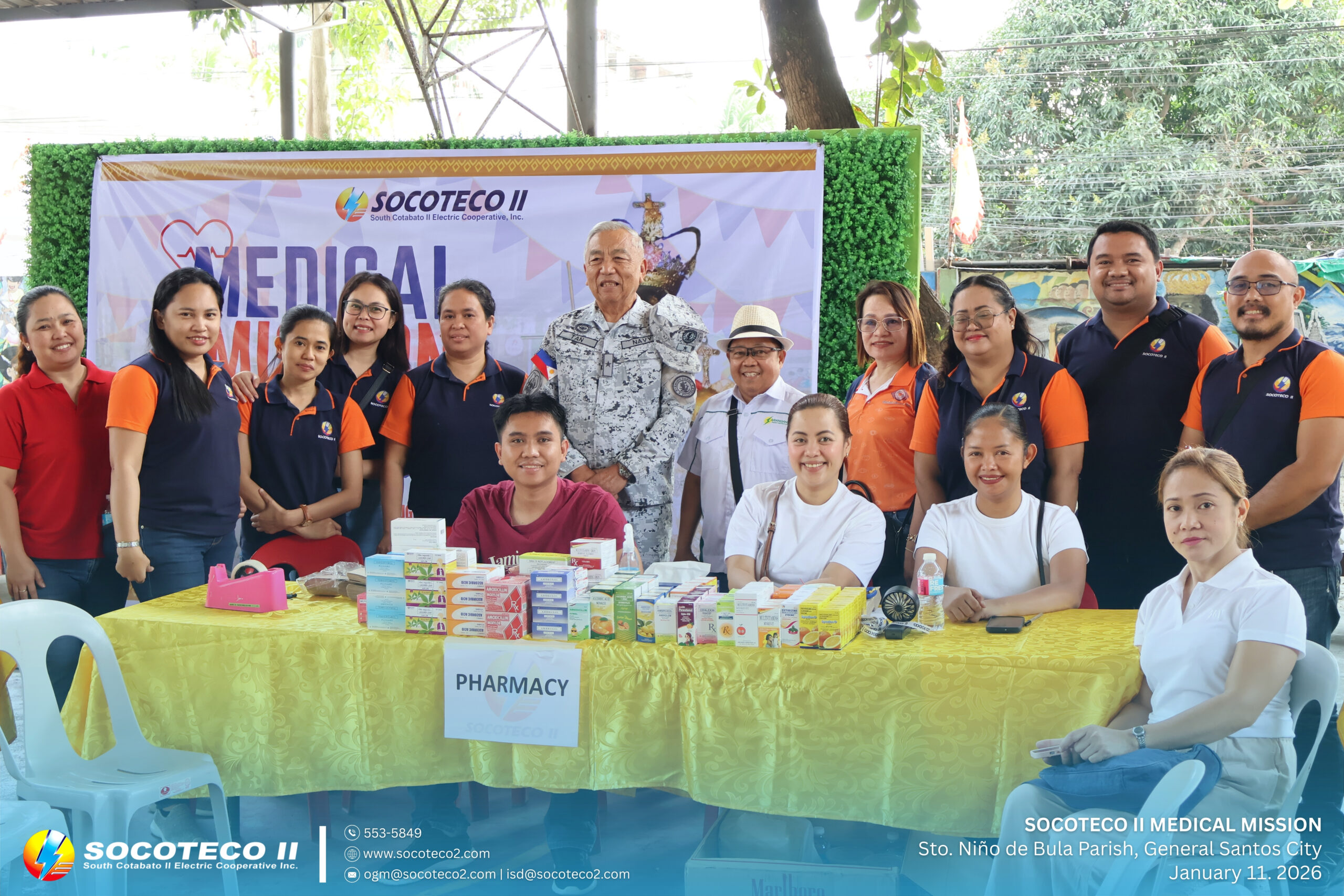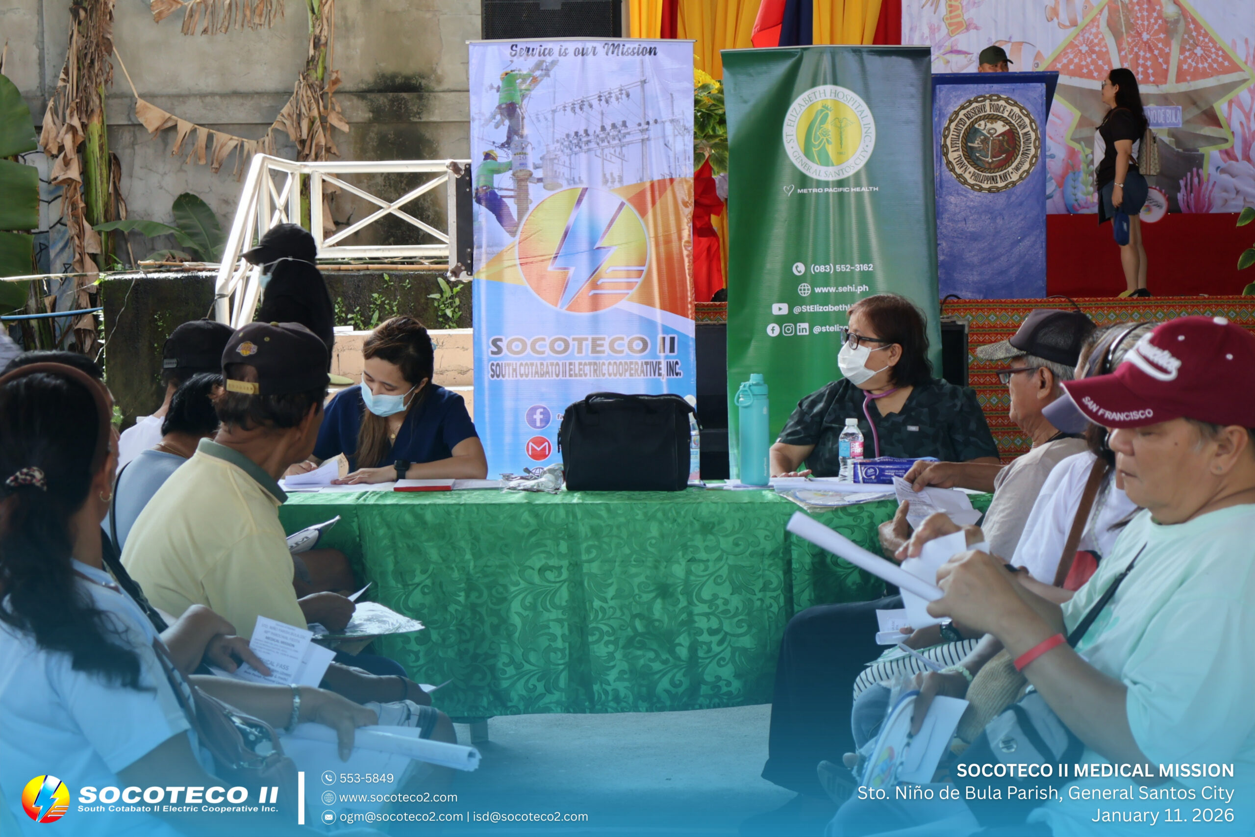 SOCOTECO II took part in the Medical Civic Action Program organized by the Philippine Navy Naval Affiliated Reserve Force – Eastern Mindanao (SOCOPA) in celebration of the 48th Parochial Fiesta of Sto. Niño de Bula Parish, held on January 11, 2026 at Sr. Sto. Niño Parish Covered Court, Brgy. Bula, General Santos City.