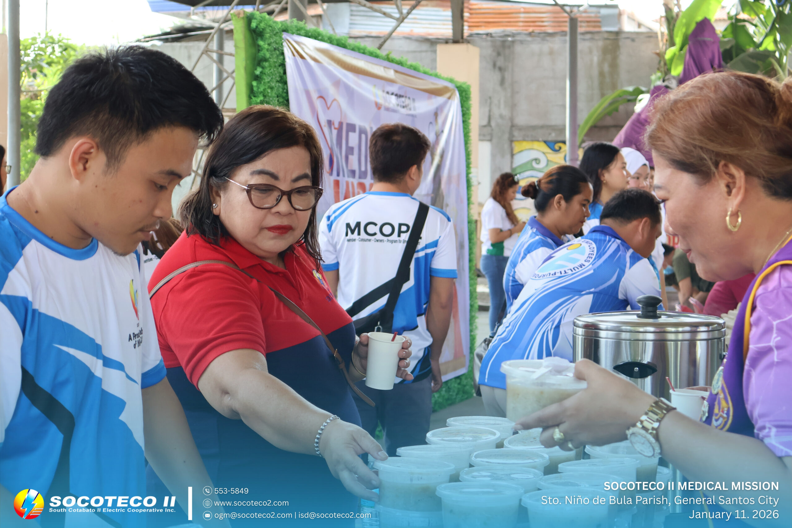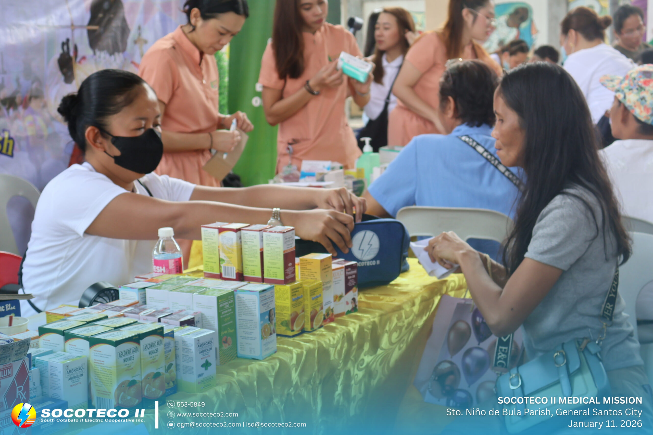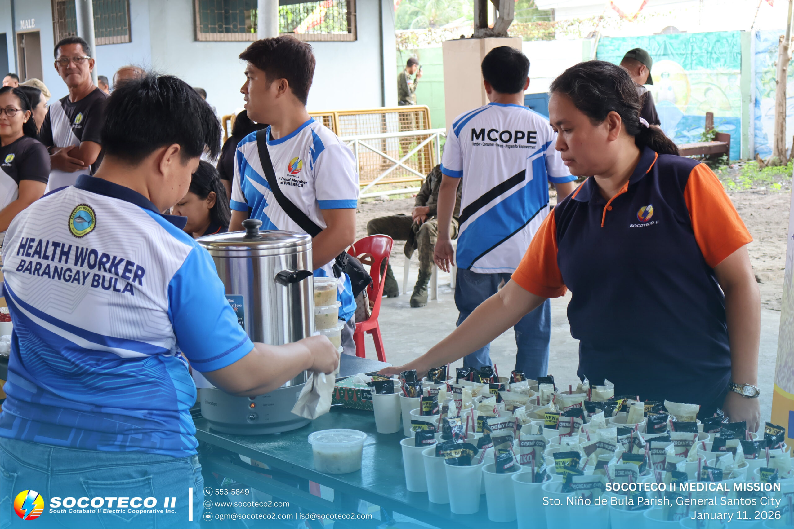 SOCOTECO II took part in the Medical Civic Action Program organized by the Philippine Navy Naval Affiliated Reserve Force – Eastern Mindanao (SOCOPA) in celebration of the 48th Parochial Fiesta of Sto. Niño de Bula Parish, held on January 11, 2026 at Sr. Sto. Niño Parish Covered Court, Brgy. Bula, General Santos City.
