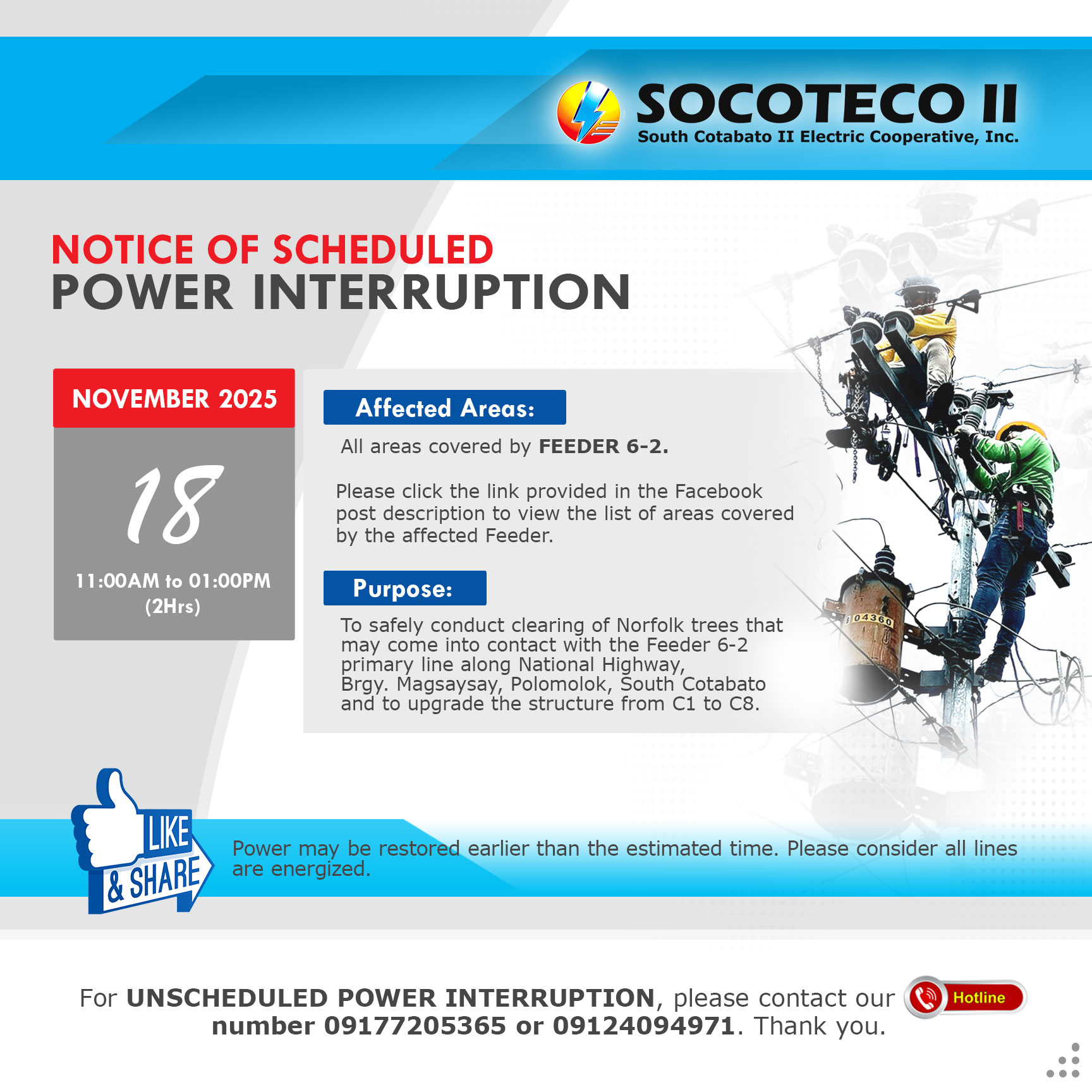 NOTICE OF SCHEDULED POWER INTERRUPTIONS on November 16, 2025