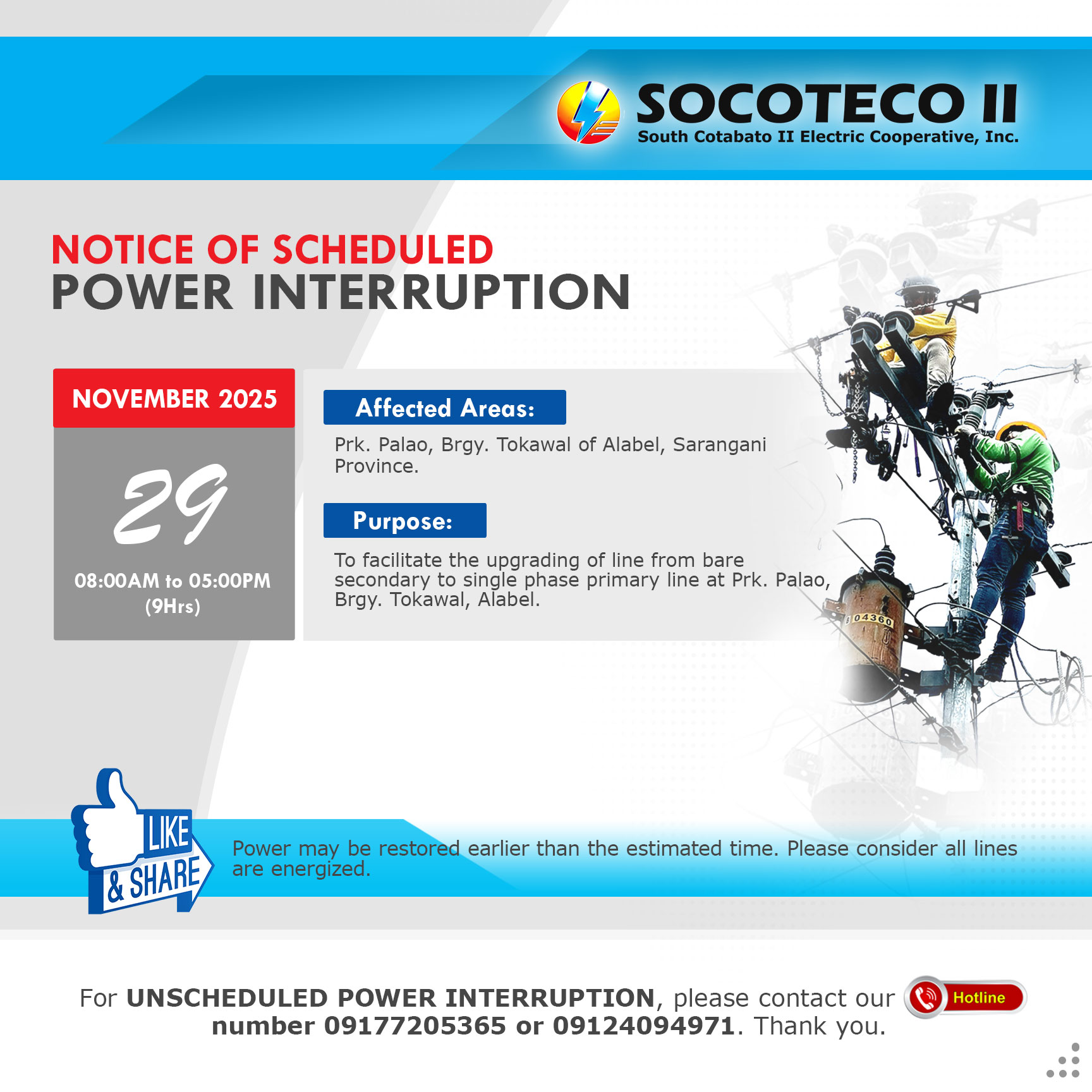 Socoteco II : // Home // News And Updates // NOTICE OF POWER INTERRUPTIO...