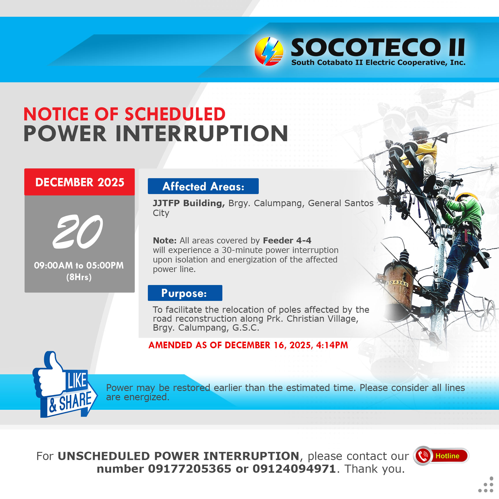 Socoteco II : // Home // News And Updates // NOTICE OF POWER INTERRUPTIO...