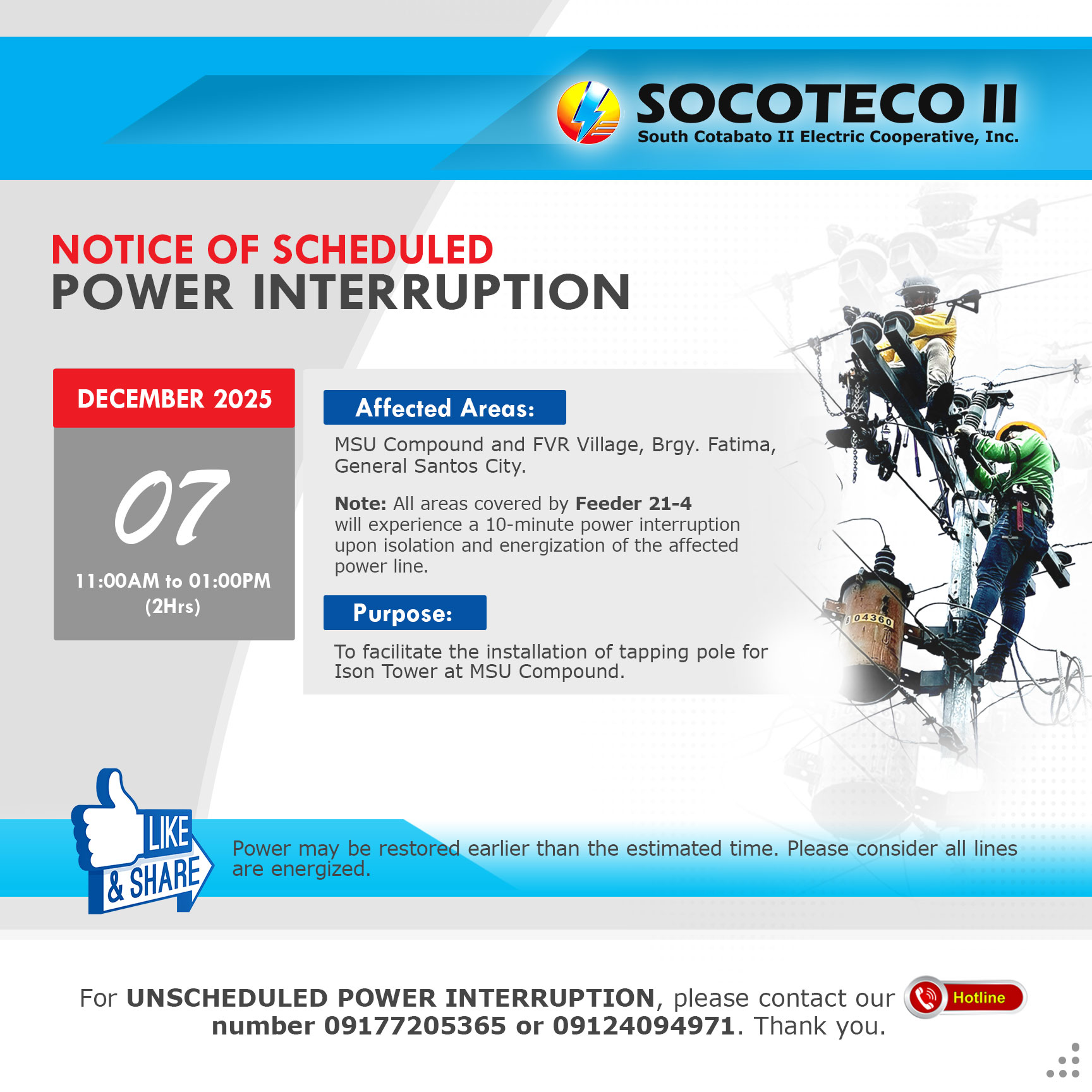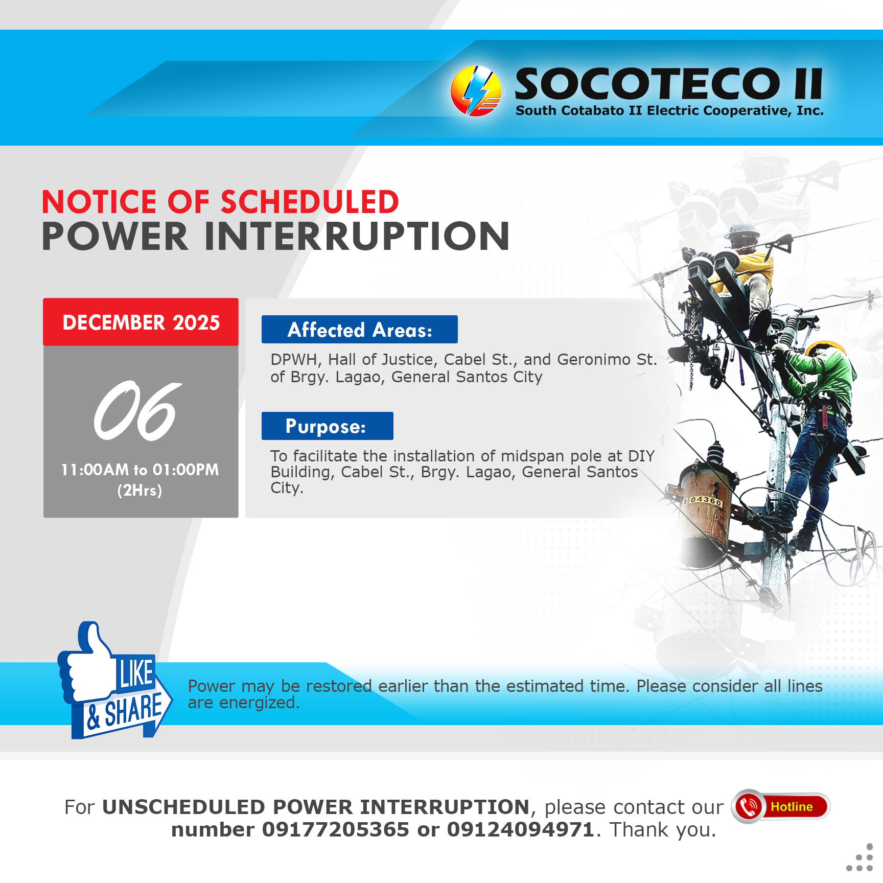 Socoteco II : // Home // News And Updates // NOTICE OF POWER INTERRUPTIO...