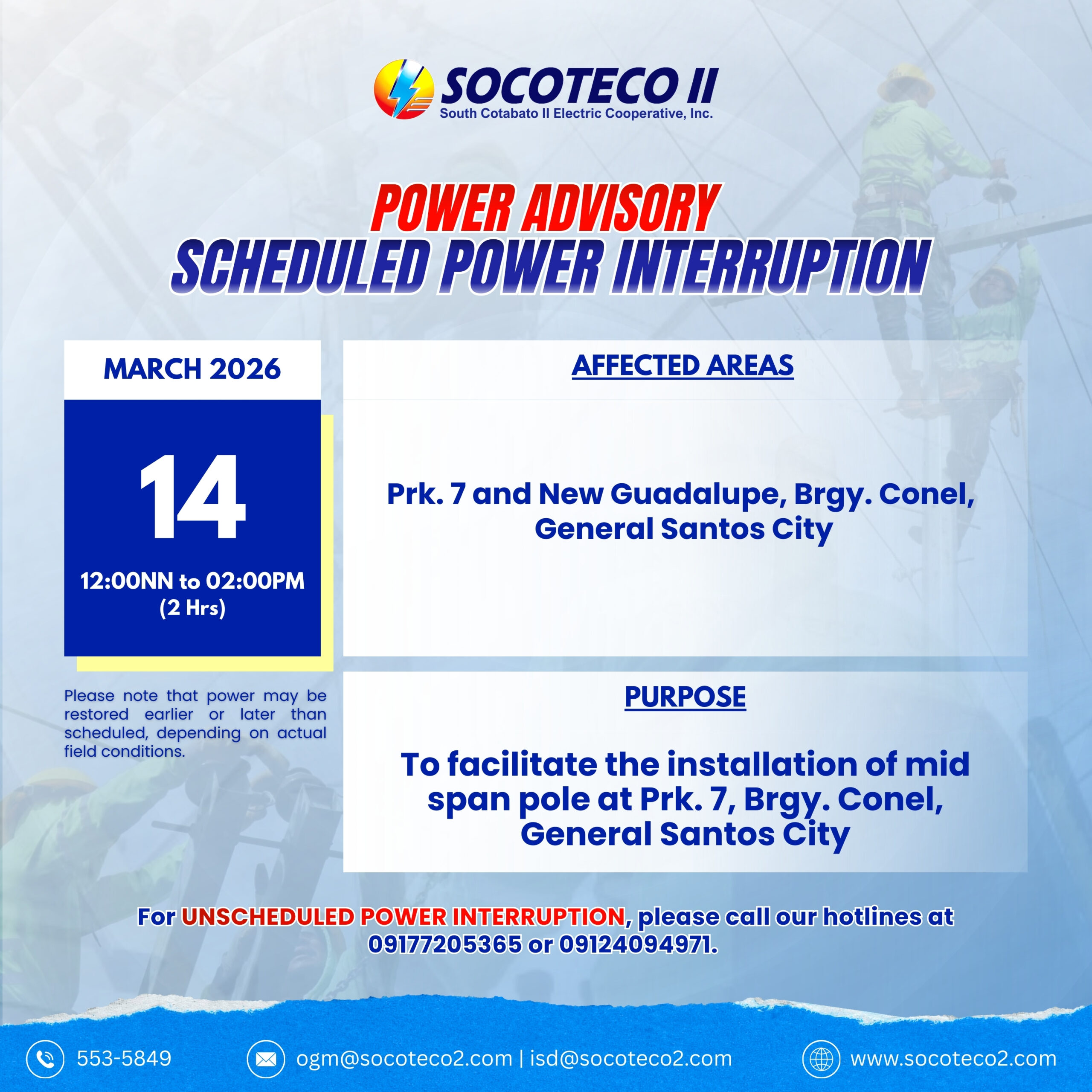 Socoteco II : // Home // News And Updates // NOTICE OF POWER INTERRUPTIO...