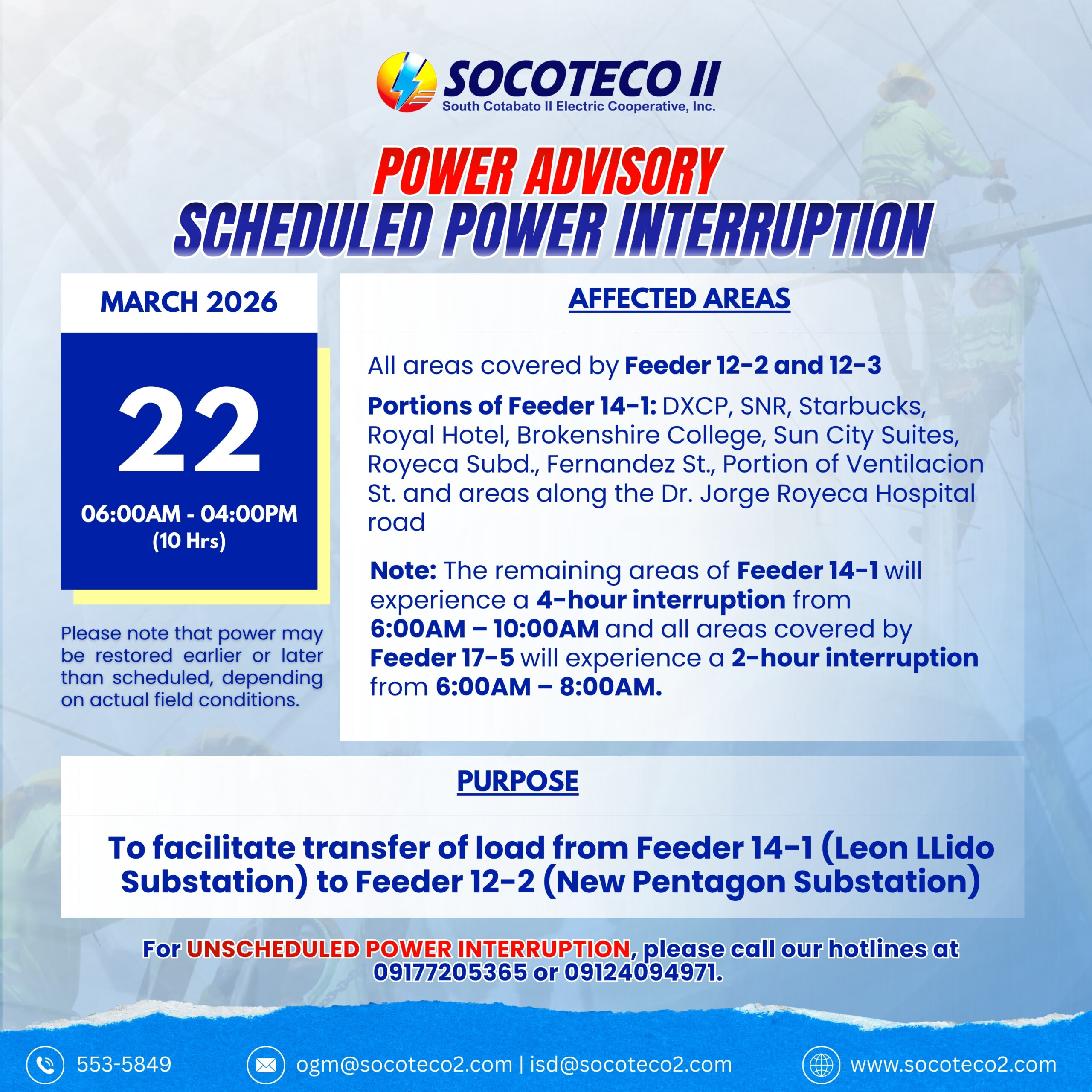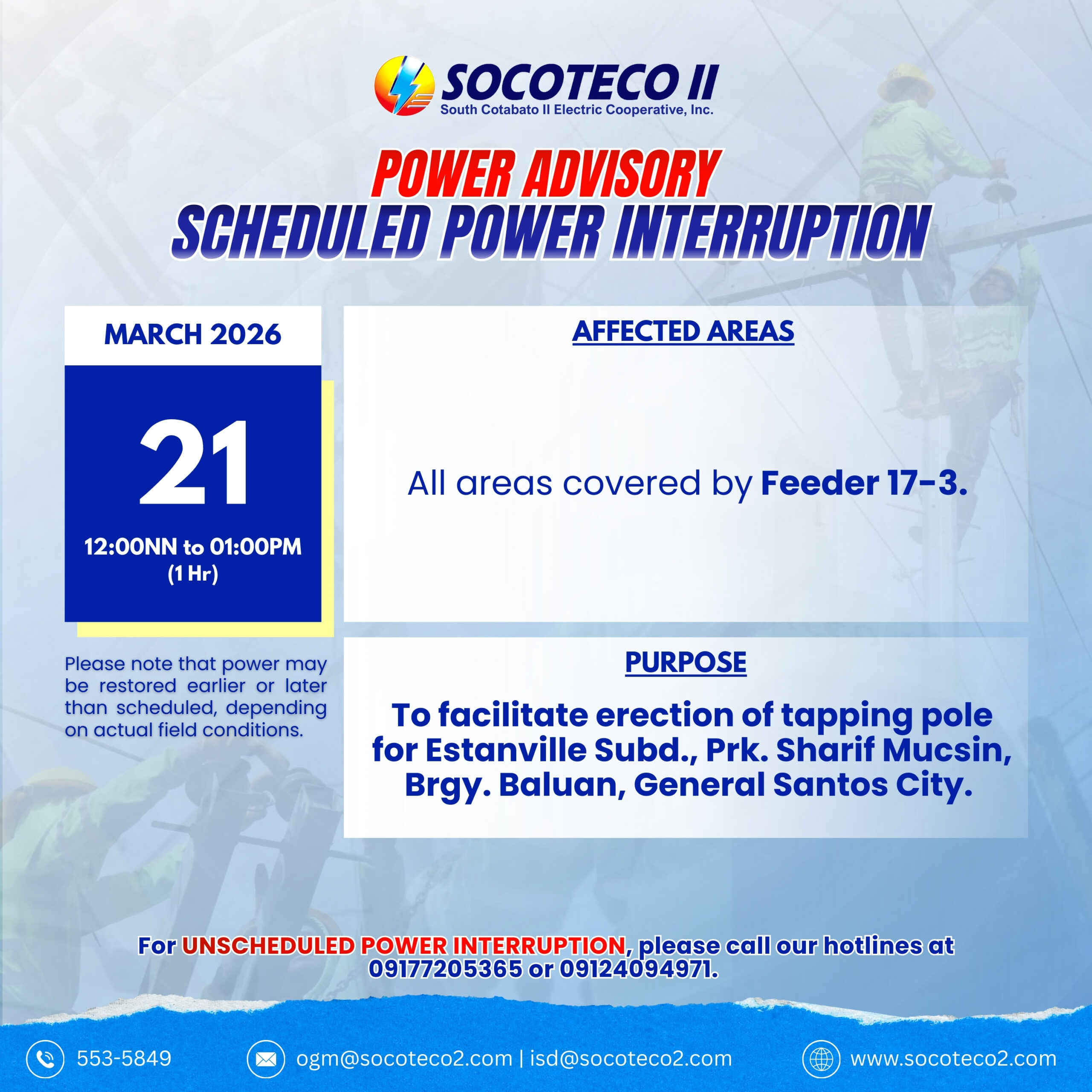 Socoteco II : // Home // News And Updates // NOTICE OF POWER INTERRUPTIO...