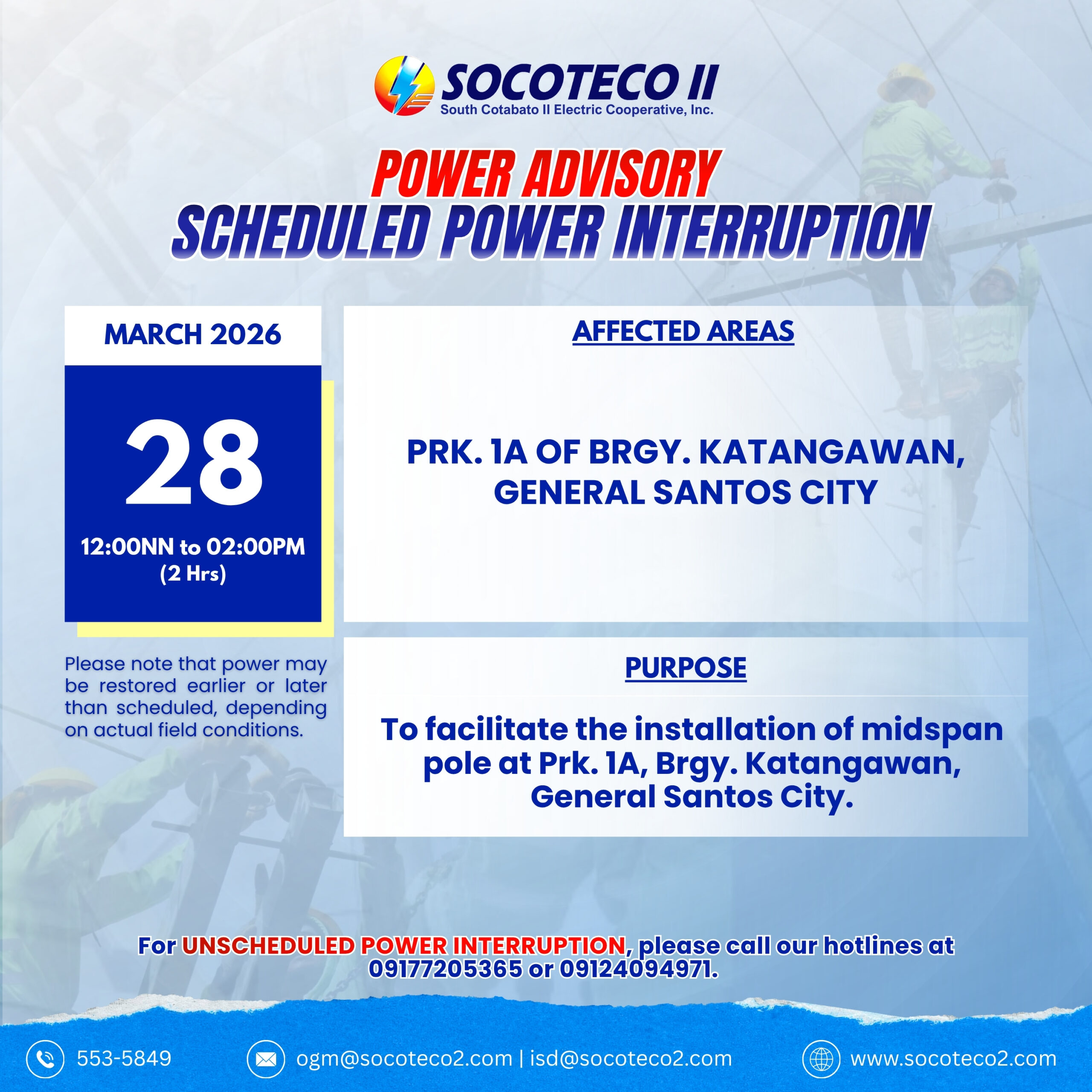 Socoteco II : // Home // News And Updates // NOTICE OF POWER INTERRUPTIO...