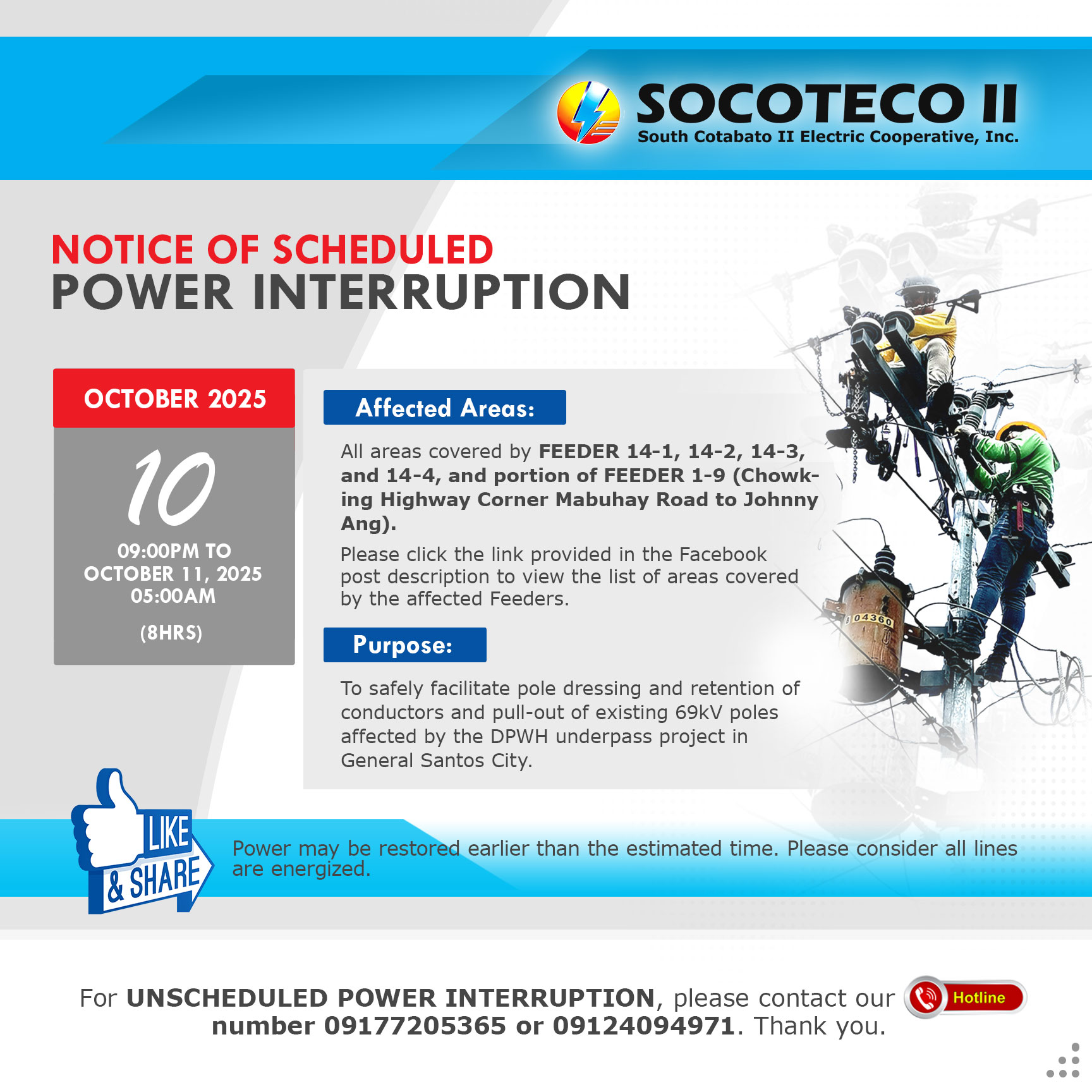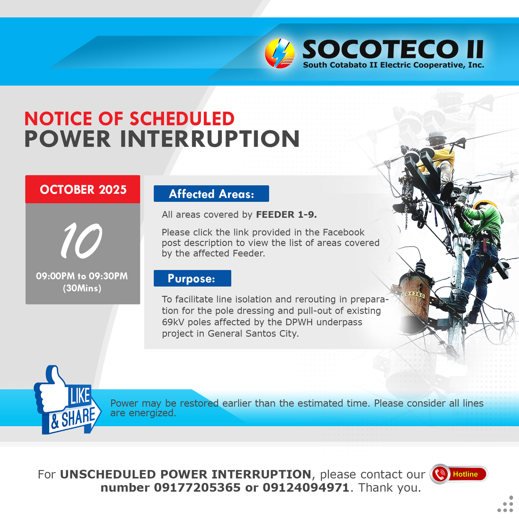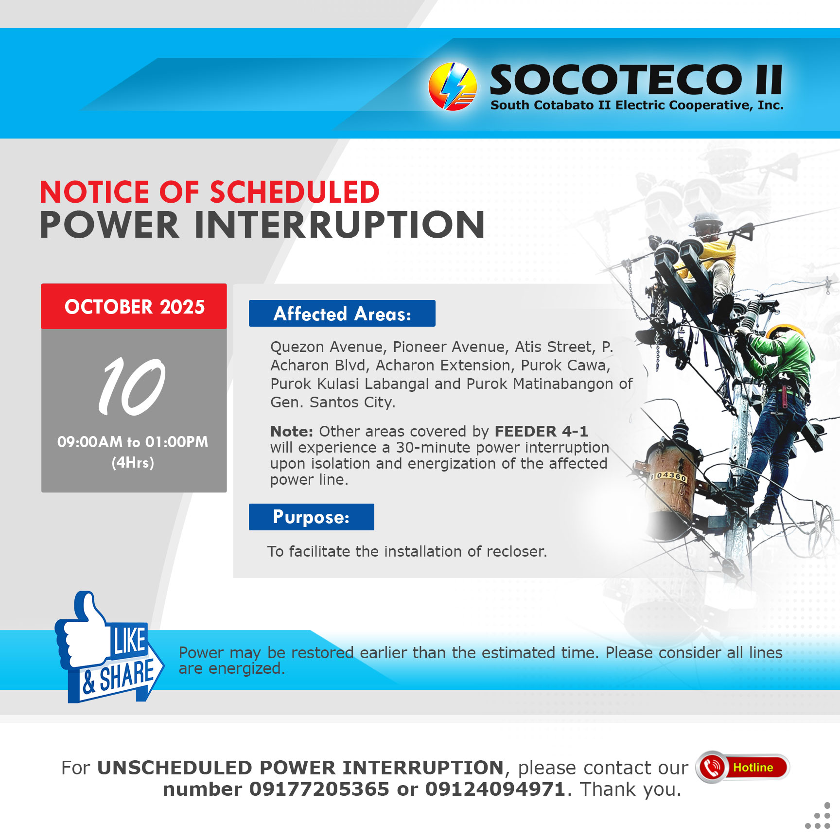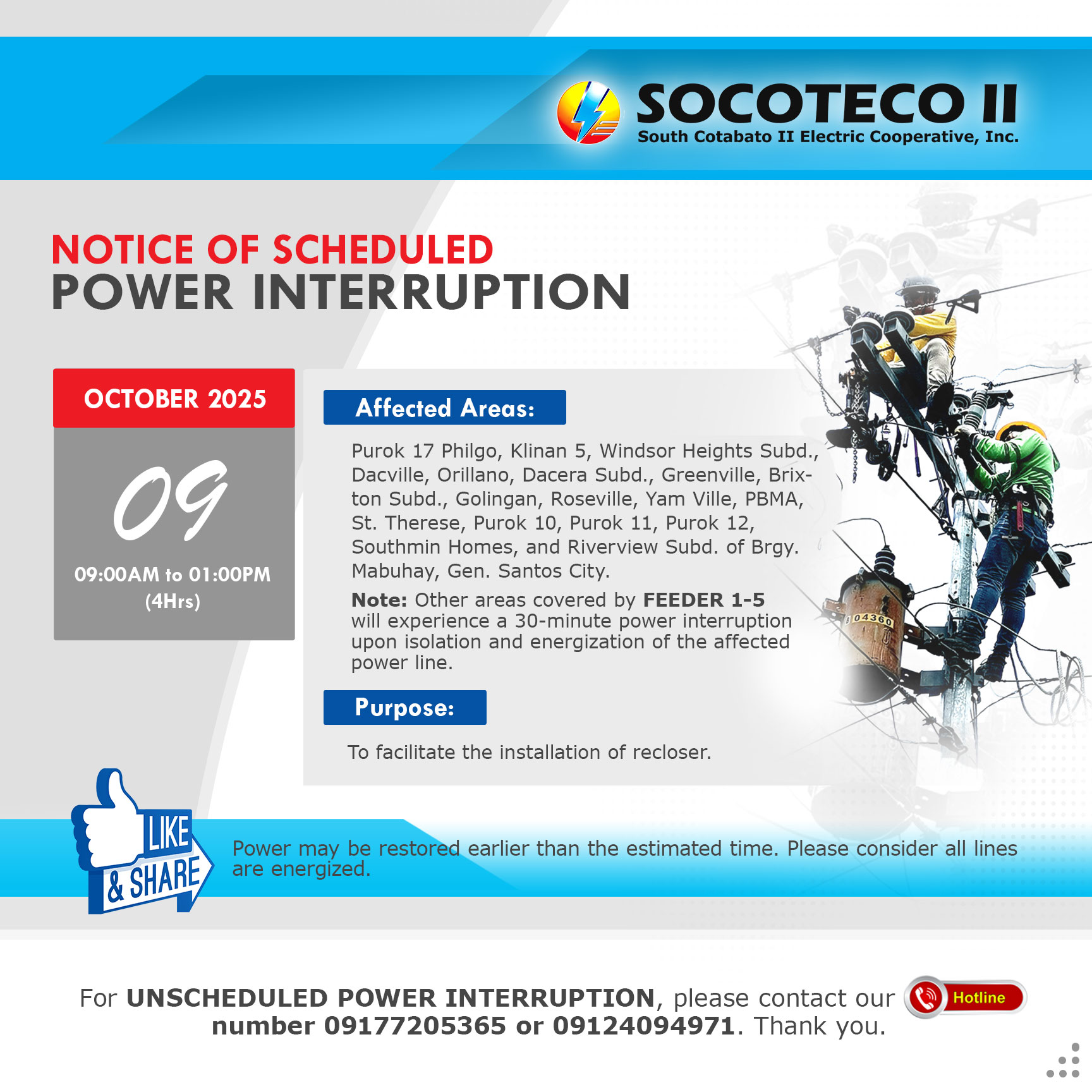 NOTICE OF SCHEDULED POWER INTERRUPTION on October 09-11, 2025