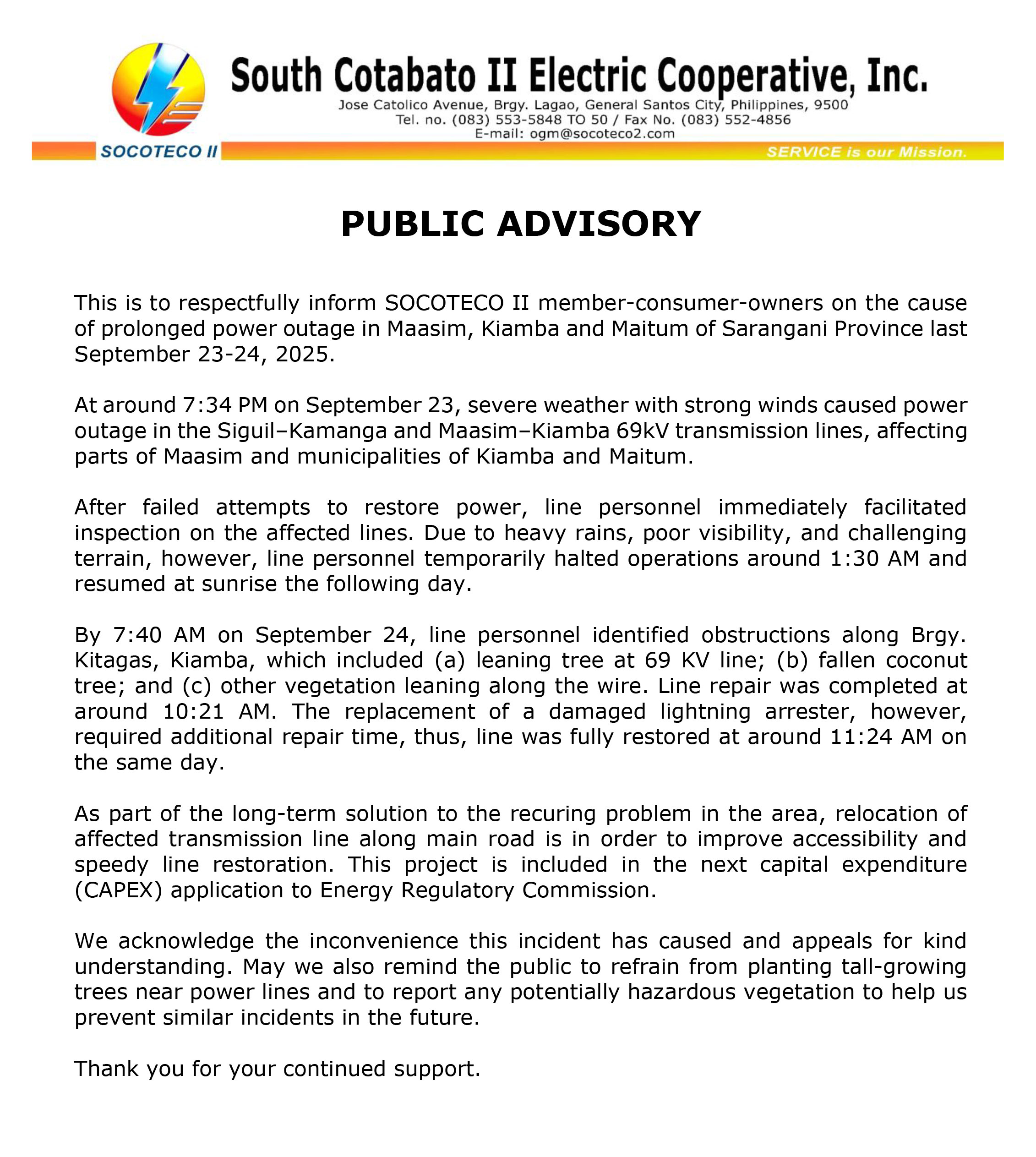 Socoteco II : // Home // News And Updates // PUBLIC ADVISORY – POW...