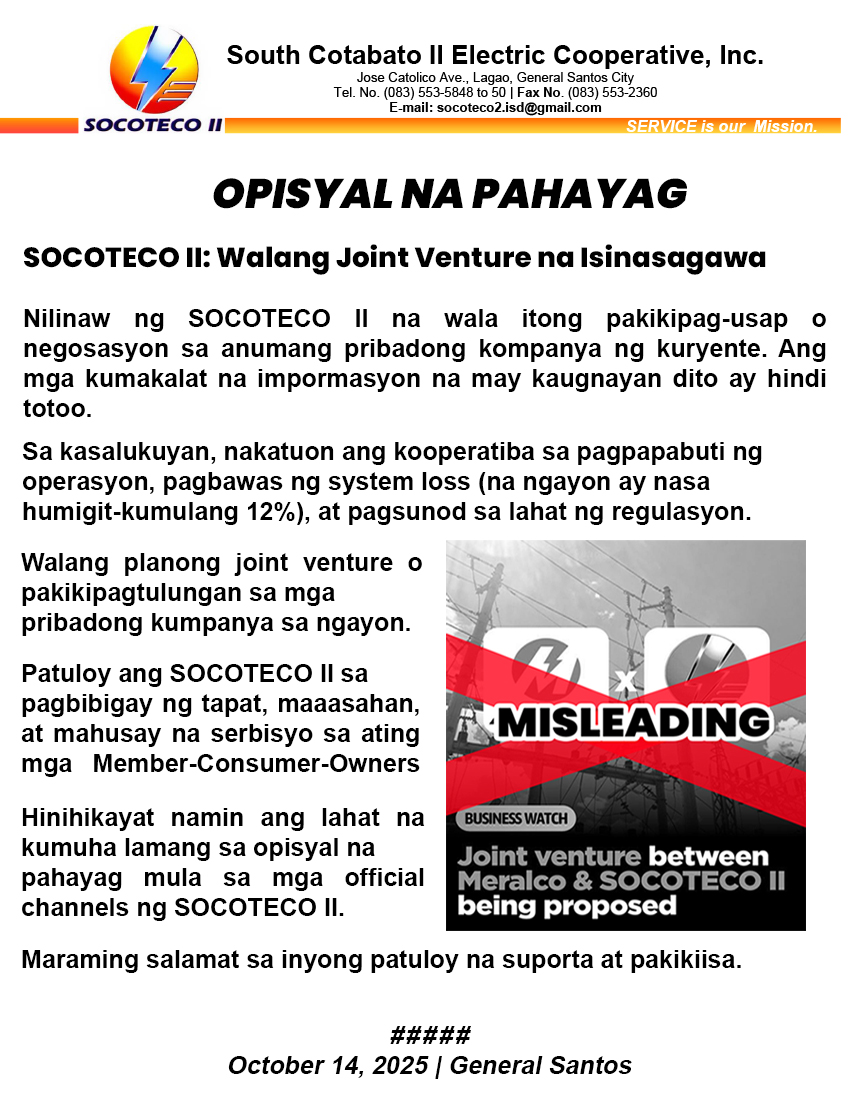 Socoteco II : // Home // News And Updates // OFFICIAL STATEMENT – ...