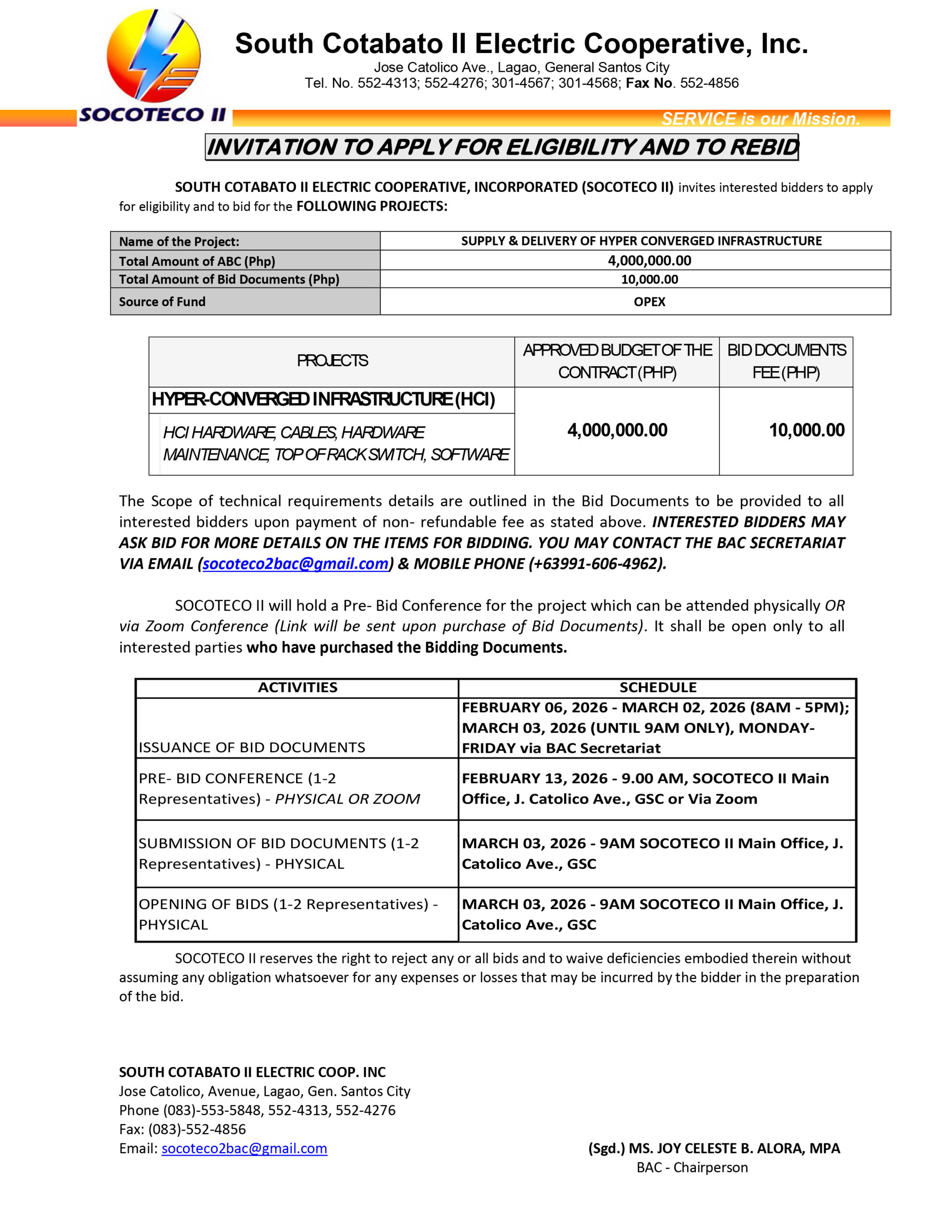 INVITATION TO APPLY FOR ELIGIBILITY AND TO RE-BID (2ND BIDDING) FOR HYPERCONVERGED INFRASTRUCTURE